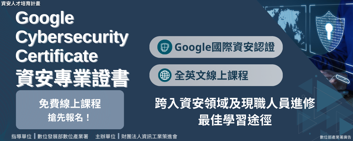 《115年第1梯次報名》Google Cybersecurity Certificate資安專業證書