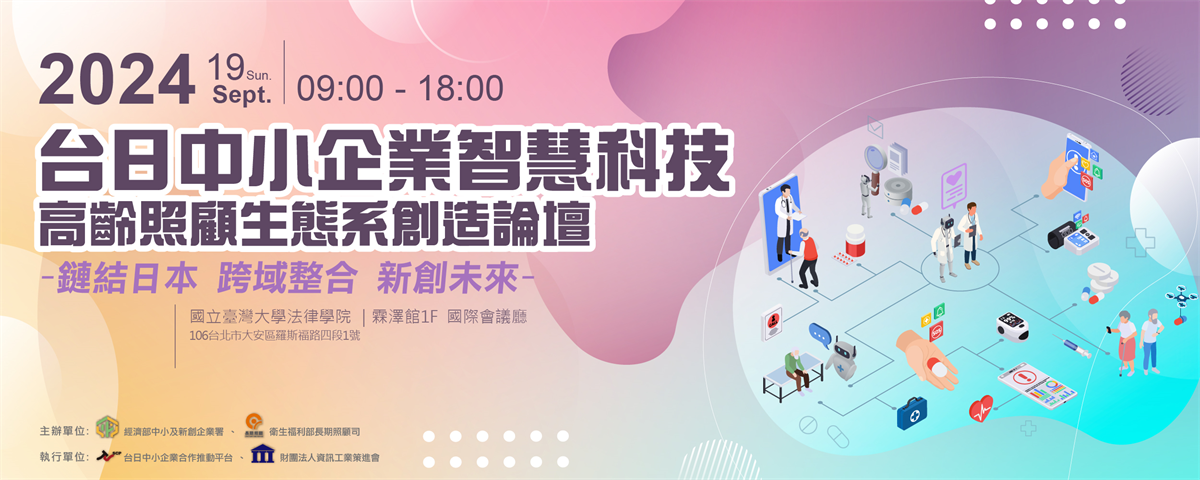 為協助我國企業掌握台日智慧照護市場及推動資源,本場活動將聚焦台日雙邊於高齡照顧科技產業動態趨勢、創新方案開發輔導,以及場域媒合及驗證等共通需求及課題,除安排日本智慧照護關鍵單位與企業來台分享趨勢分享,並透過台日專家座談、企業媒合等形式,期協助我國智慧照護企業與日本指標性組織、標竿企業等共創台日照護新商機!