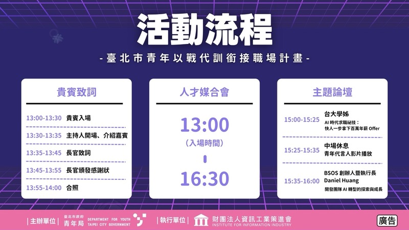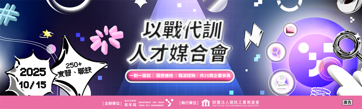 臺北市政府青年局攜手財團法人資訊工業策進會、Yourator 超過 25家產業龍頭,推出今年最後一場 「以戰代訓人才媒合會」。