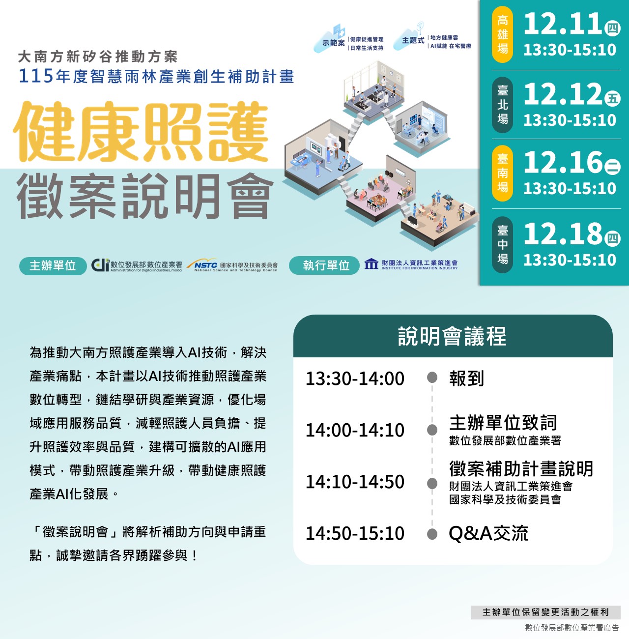健康照護徵案說明會|大南方新矽谷推動方案-115年度智慧雨林產業創生補助計畫