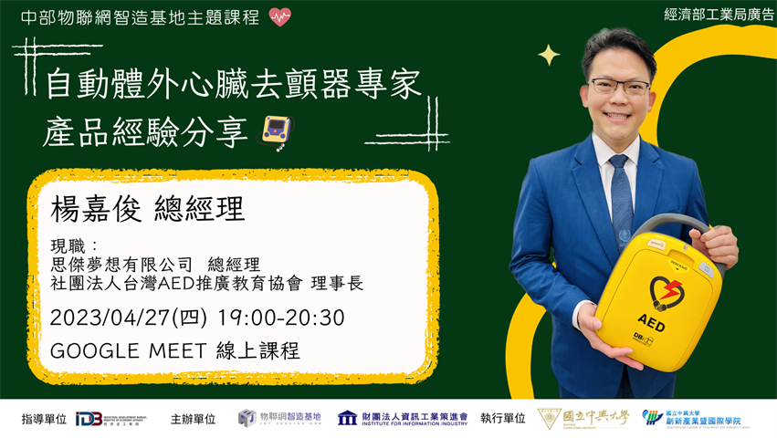 【物聯網智造基地-主題課程】-「自動體外心臟去顫器專家產品經驗分享」(免費線上活動)