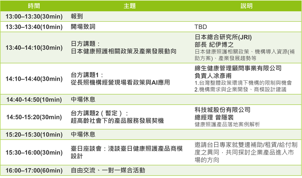 l安排台日專家座談,共同探討台日照護產品開發與商業服務模式設計方向