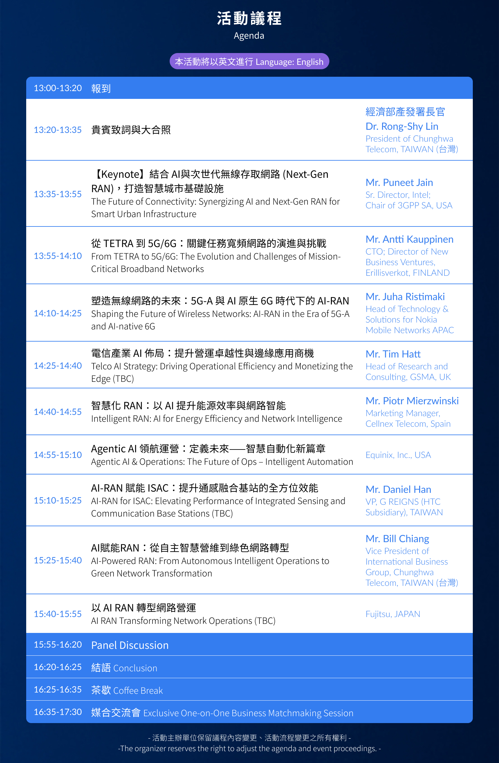 主辦單位保留本活動議程及講師變更之權利。