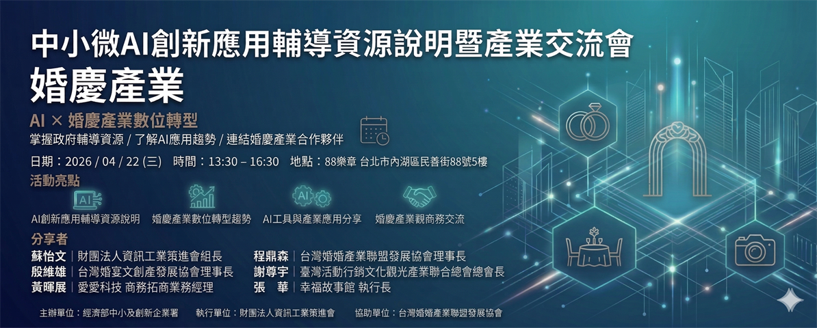 協助婚慶產業夥伴了解 AI 創新應用與數位轉型的可能性,並促進產業鏈之間的合作與資源整合,共同推動婚慶產業的創新發展。